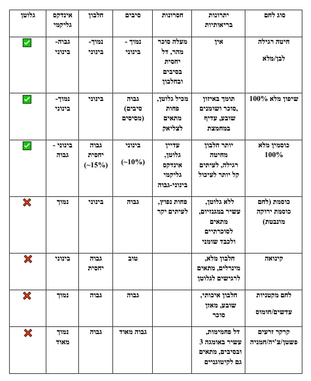 היתרון היחסי: לשיפון – אינדקס גליקמי נמוך + סיבים מסיסים;
