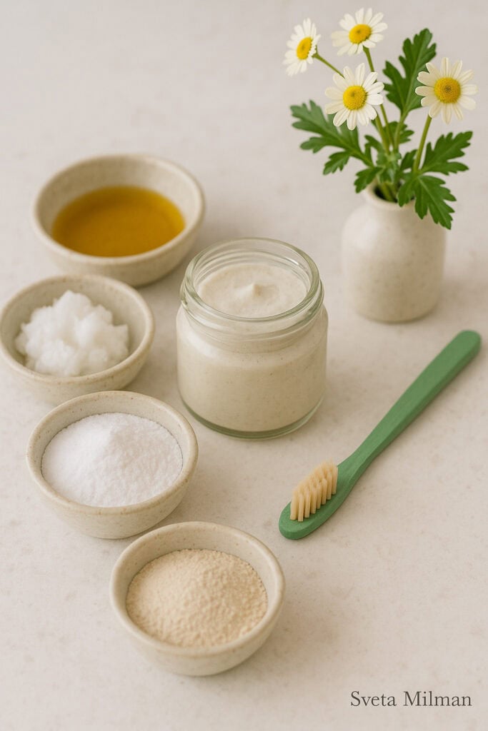 - במקום להשתמש במשחות שיניים תעשייתיות, אפשר להכין בקלות משחה טבעית בבית – ללא כימיקלים וללא פלואוריד – שמתאימה לשימוש יומיומי.